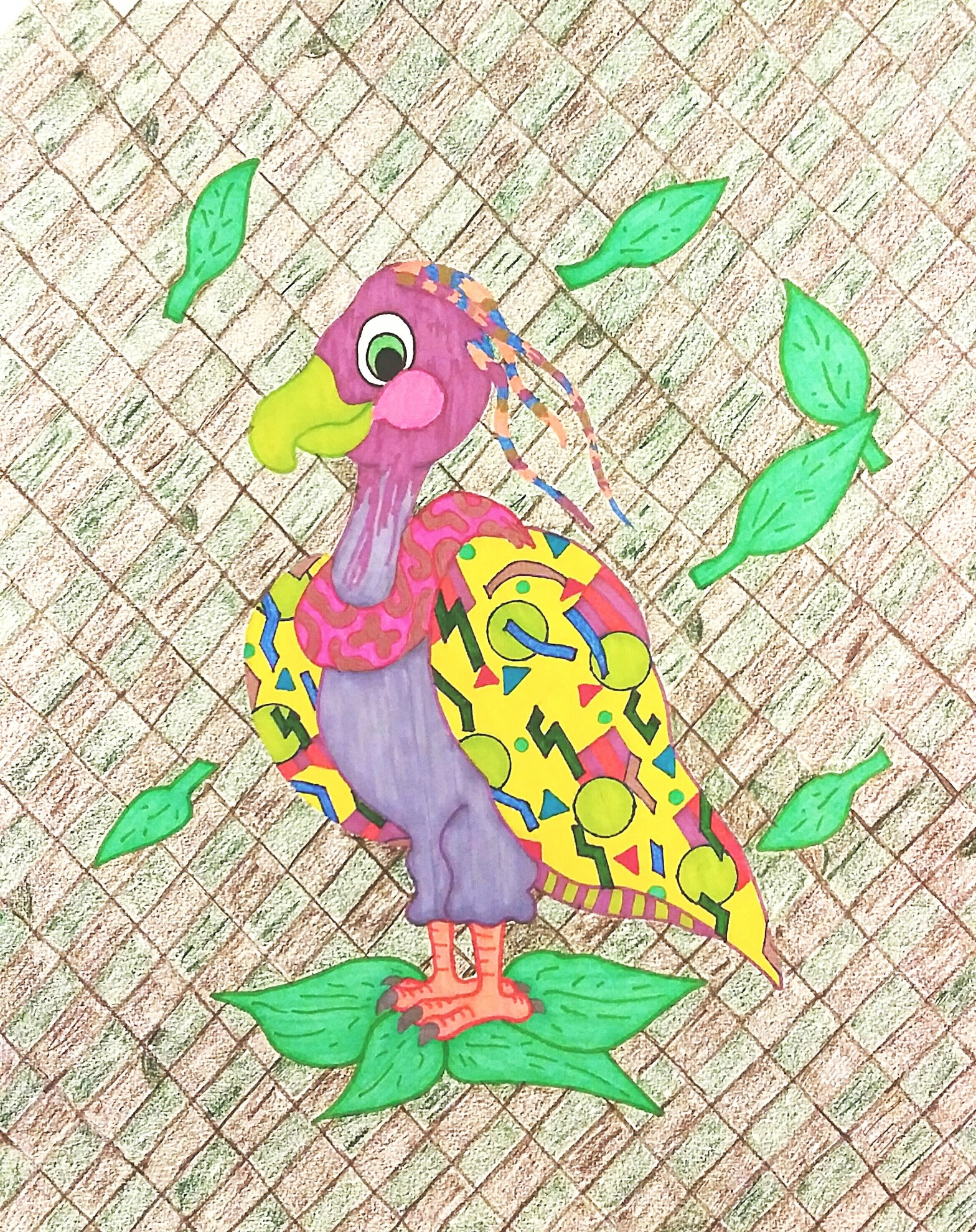 Such a tall bright bird To stand alone on his leaves Taking in the nature Of the woods around him Make a joyful day