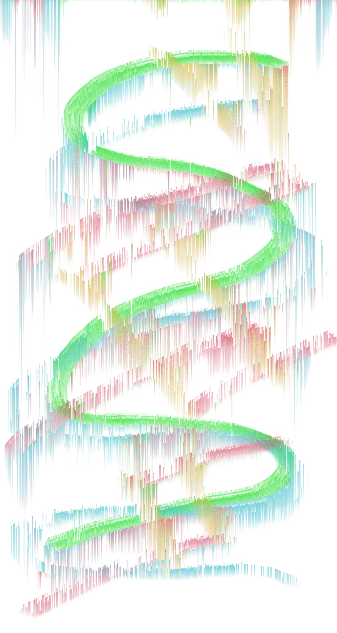 It’s a squiggly green line With sticky like colors That appear as scratched Going downward On a wall